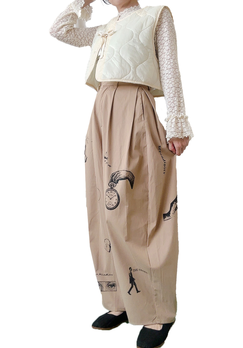 カーブデザインが綺麗なベージュのパンツ