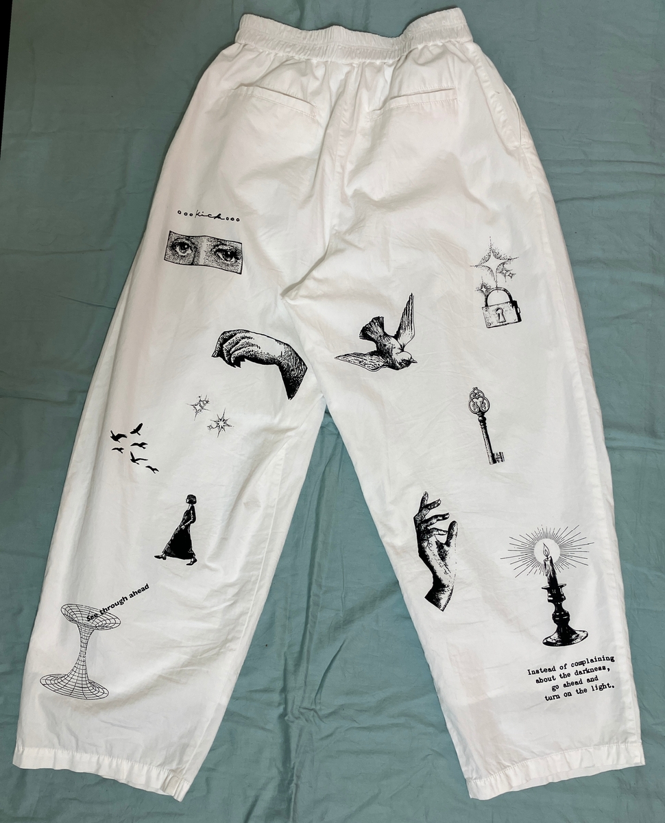 ︎シルクスクリーン/手描きイラスト ともに、布製対応のインクで